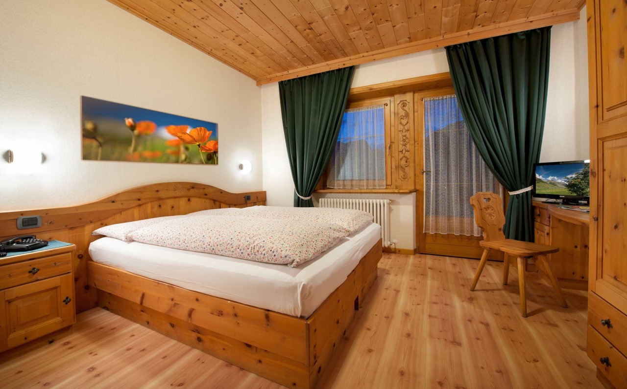 Munita di tutte le comodità e ammobiliata in tipico stile montano, con pavimenti in parquet, soffitto e arredi in legno massiccio, è ideale per un soggiorno rilassante e piacevole in coppia.